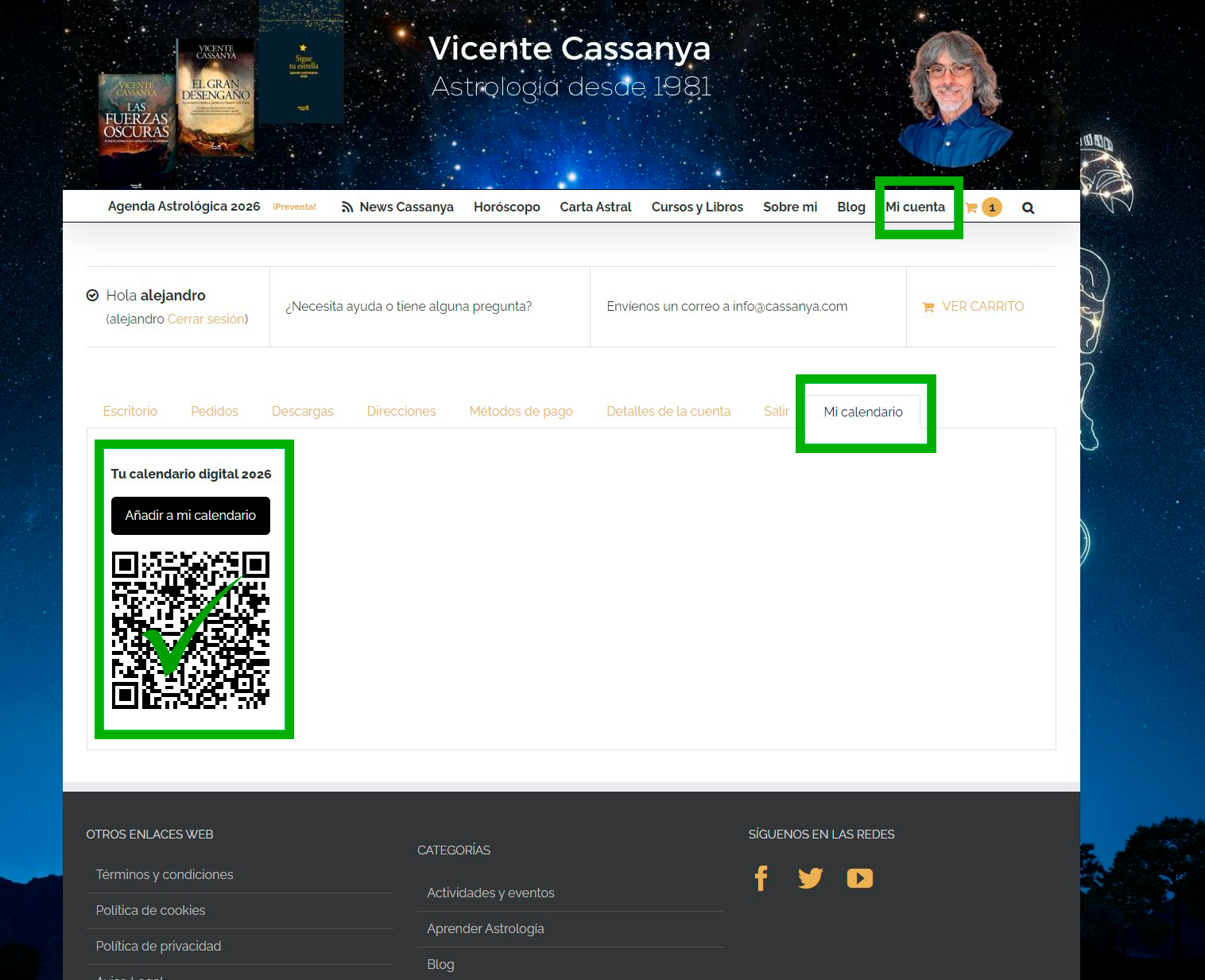 Recibirás un correo con el código QR para añadir tu calendario, además en tu cuenta de cassanya.com, en el apartado «mi cuenta» contarás con una nueva pestaña llamada, «Mi Calendario», donde tendrás acceso al mismo y podrás vincularlo hasta en 5 dispositivos tuyos.